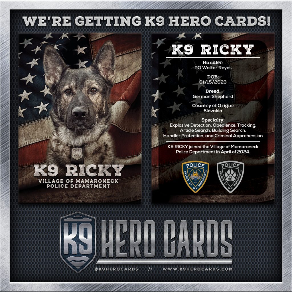 The Village of Mamaroneck Police Department is proud to share the official K9 Hero Cards featuring our K9 Unit.